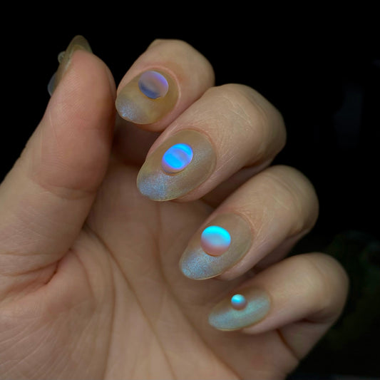 Etape 6 (Gel pad) : Pose les gel pads qui conviennent à tes ongles, en laissant environ 1 mm entre la cuticule et le gel pad. Une fois posés, masse les pour chauffer la matière et enlève les opercules.