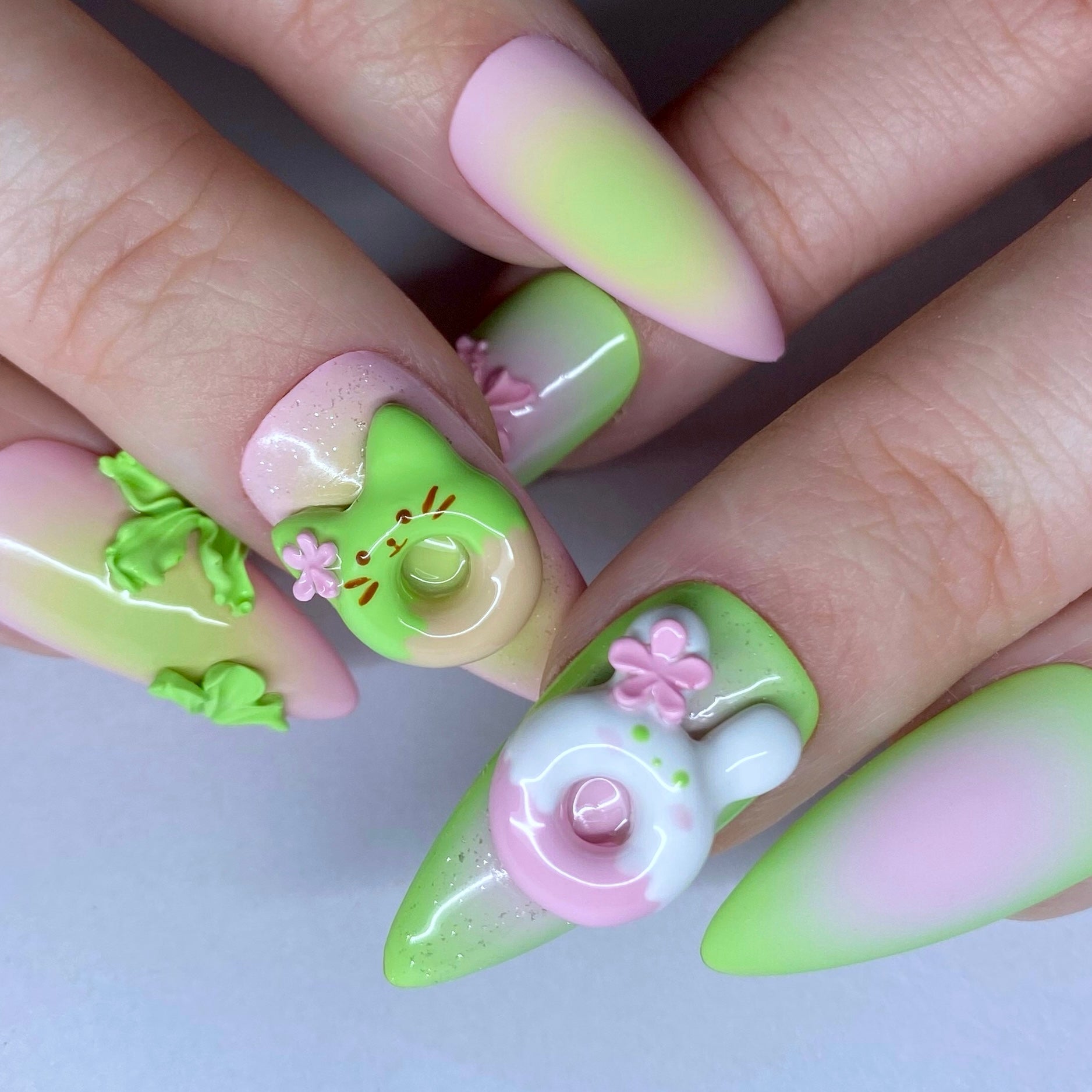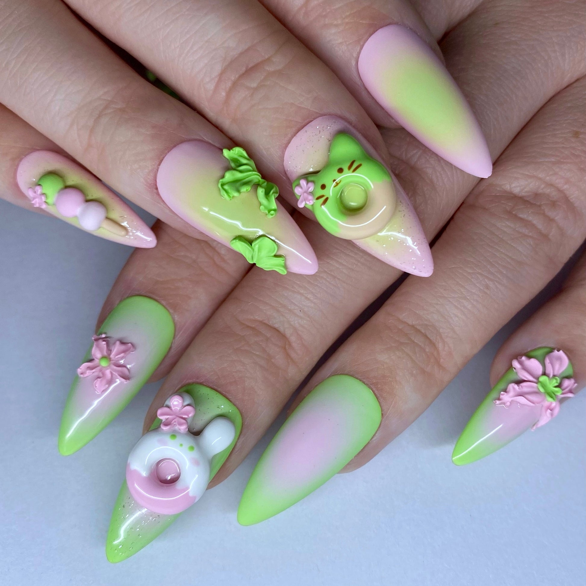 Tu rêves d'ongles trop mignons qui te donnent envie de grignoter ? Alors, les Press On Nails "Mochi Mania" sont faits pour toi ! Imagine : une base rose pastel toute douce, comme une pâte de mochi fraîchement préparée.