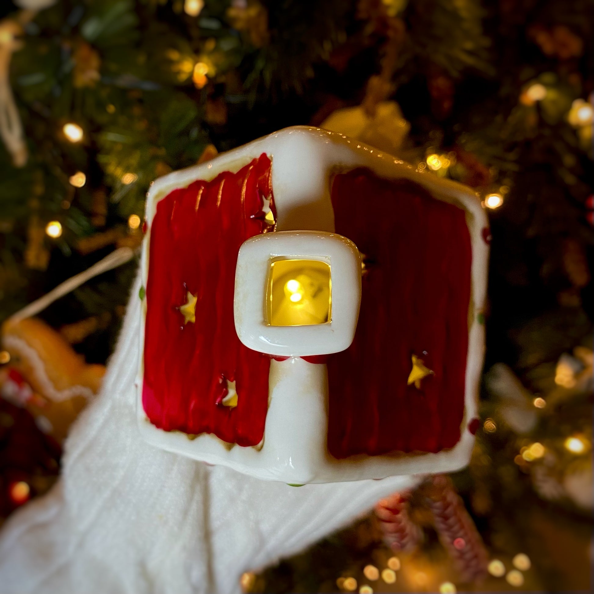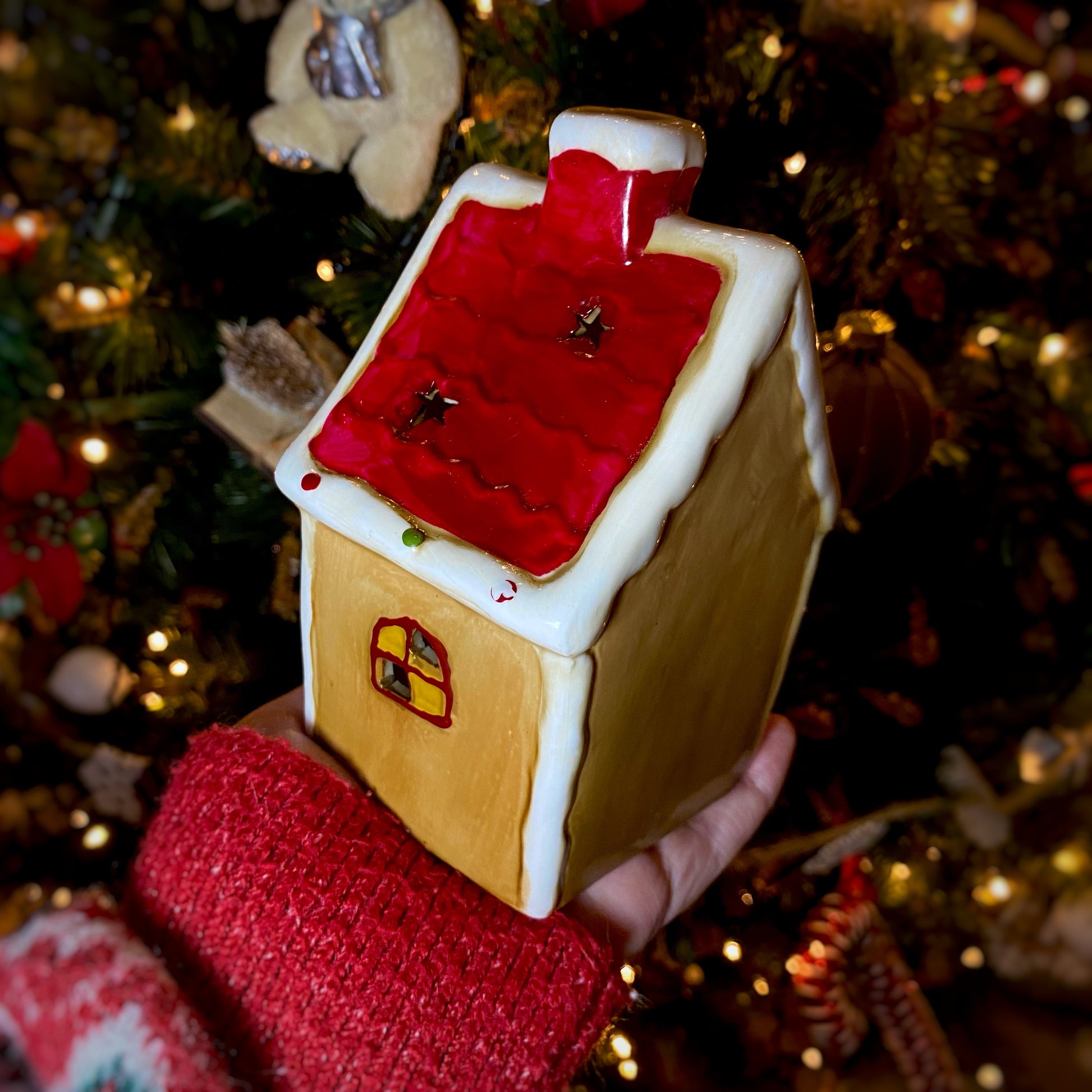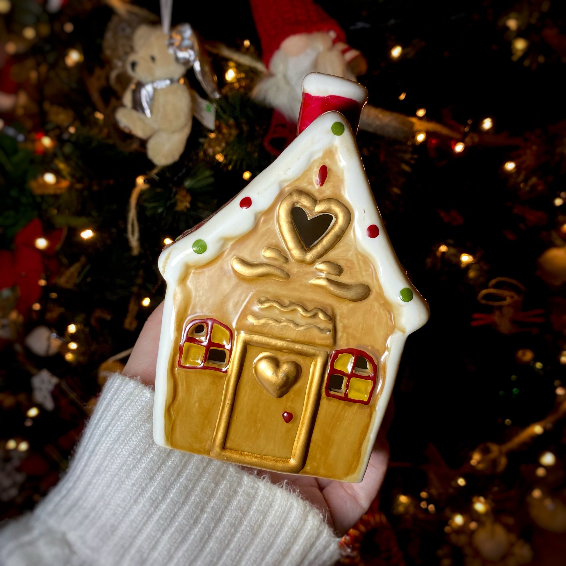 Maison en pain d'épice en porcelaine avec éclairage LED.