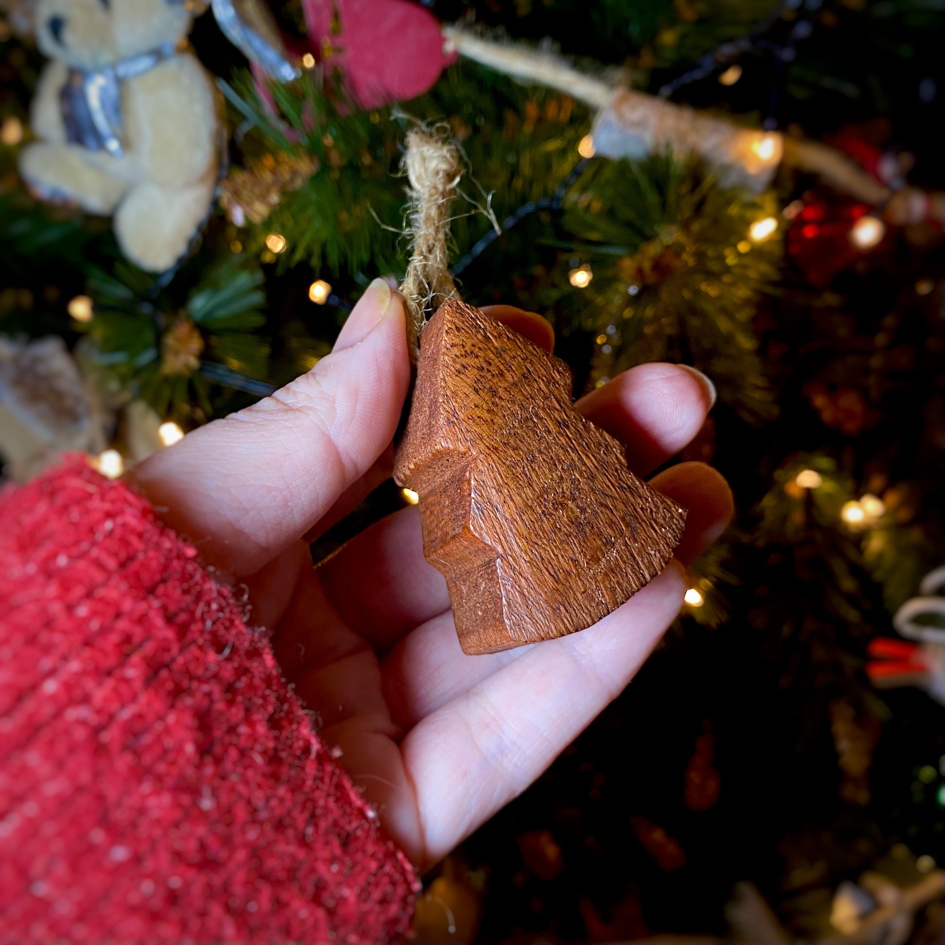 Sapin de Noël parfumé à suspendre, en bois de manguier.